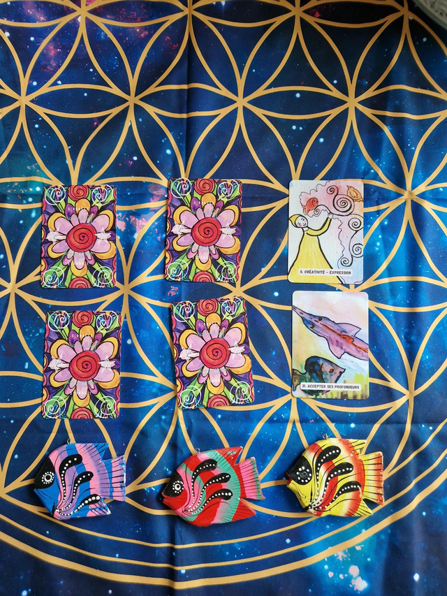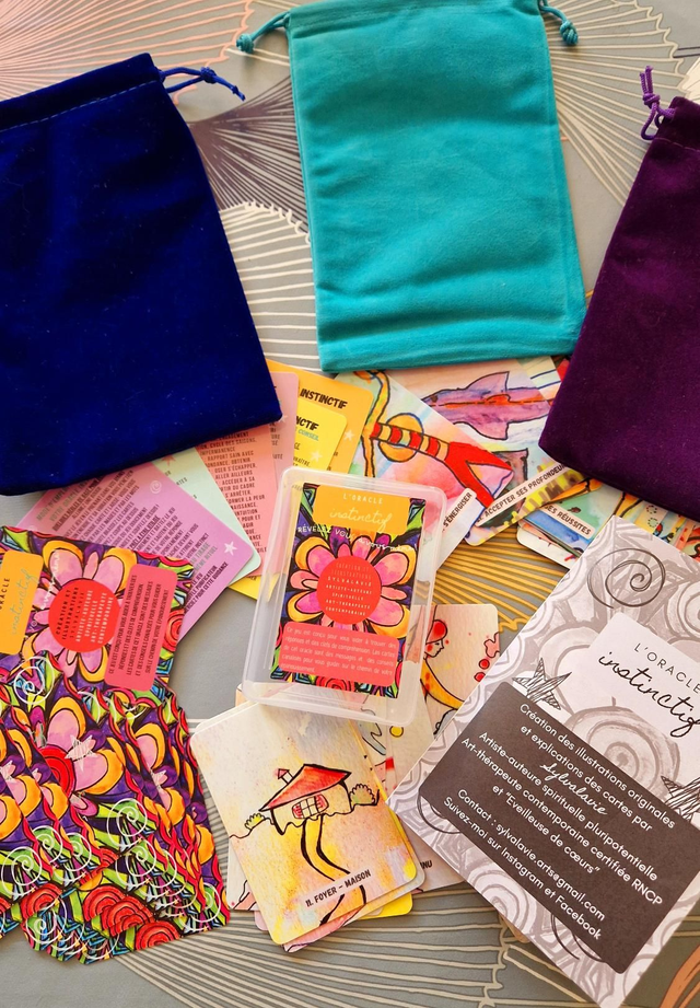 Jeu oracle de 36 cartes (dont 20 cartes guidance messages et 16 cartes conseils) + 7 cartes explicatives + un livret explicatif de 48 pages papier + une pochette velours format 13x18 Couleur turquoise + 1 accès gratuit au livret Ebook 144 pages. Imprimé en France